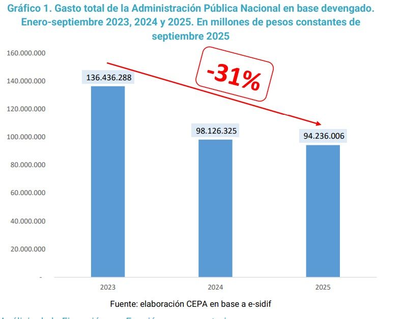 El Gobierno gastó un peso menos de cada 3 que había gastado en 2023
