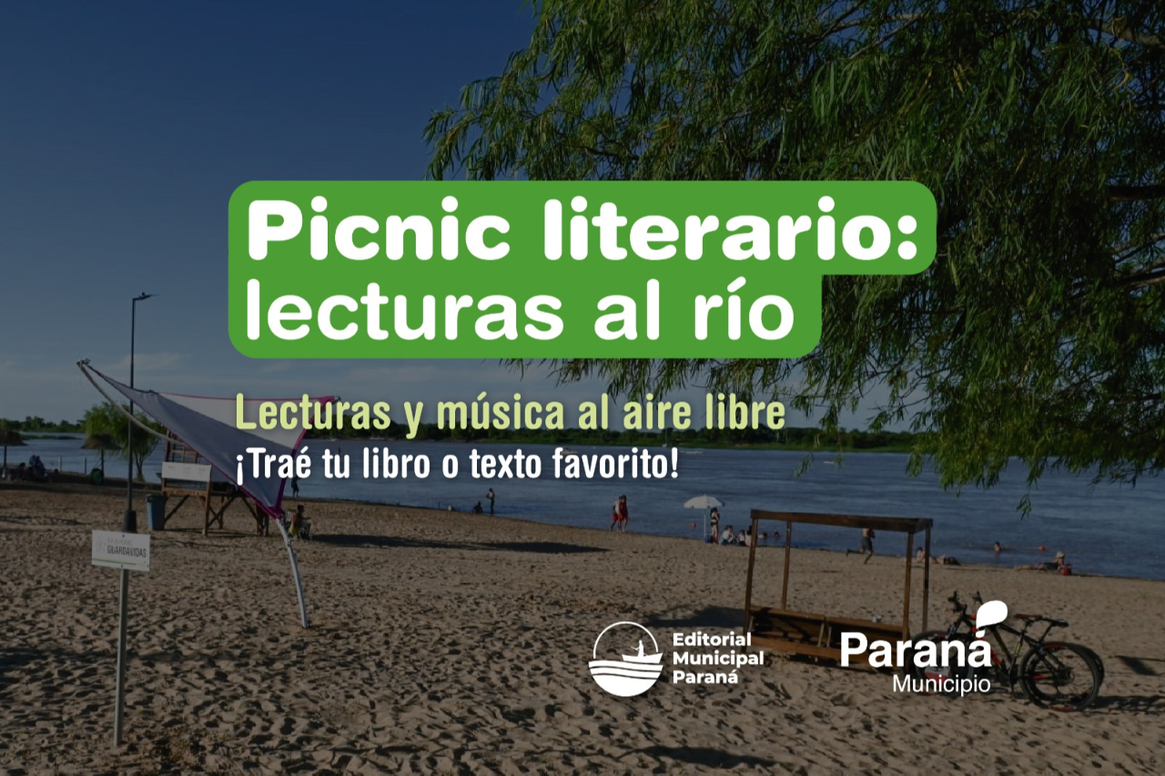 La Municipalidad, a través de la Editorial Municipal, invita a la comunidad a participar del Picnic Literario: lecturas al río, un encuentro de lecturas compartidas. Será el sábado 15 de noviembre, a las 10 hs, en el Balneario Municipal.