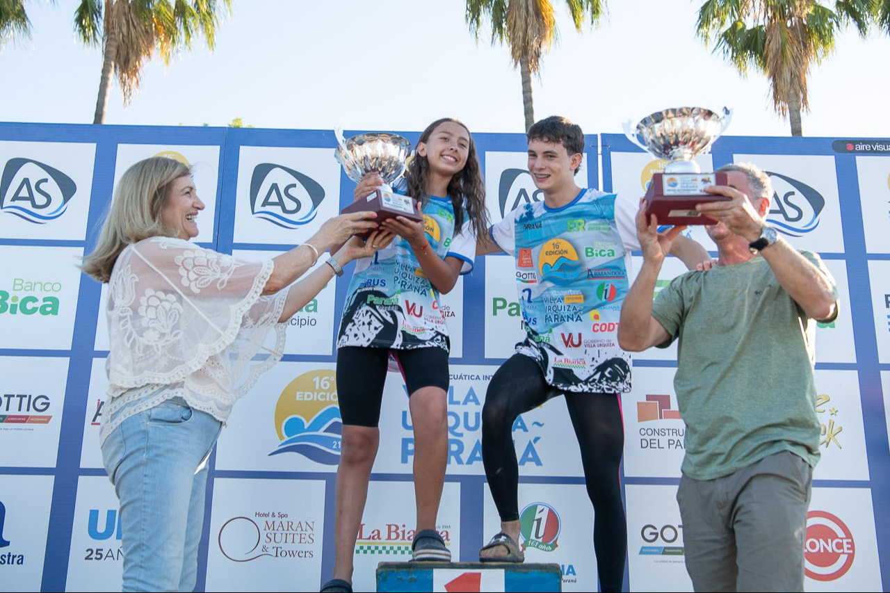 La competencia reunió a 96 nadadores argentinos y extranjeros, que unieron Villa Urquiza y el Balneario Municipal. El paranaense Lorenzo Rizzi, de 16 años, se consagró ganador de la prueba, mientras que Miranda Lescano, de 13, alcanzó el quinto puesto en la general y fue la mejor clasificada en la rama femenina.