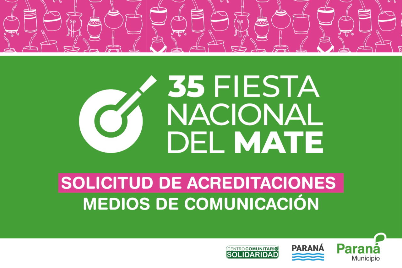 La Municipalidad de Paraná, ente organizador de la Fiesta Nacional del Mate, comunica a los diferentes medios de comunicación interesados en la cobertura de la 35ª edición del evento, que la solicitud de acreditaciones de Prensa deberá ser presentada con fecha límite el día 31 de enero de 2026 inclusive.