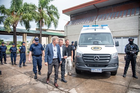 El mandatario, acompañado por el ministro de Seguridad y Justicia, Néstor Roncaglia; y el jefe de Policía, Claudio González, entregó concretamente seis unidades cero kilómetros, de las cuales cinco serán destinadas al transporte operativo. Asimismo, se incorporarán dos vehículos restaurados, entre ellos una unidad de control.